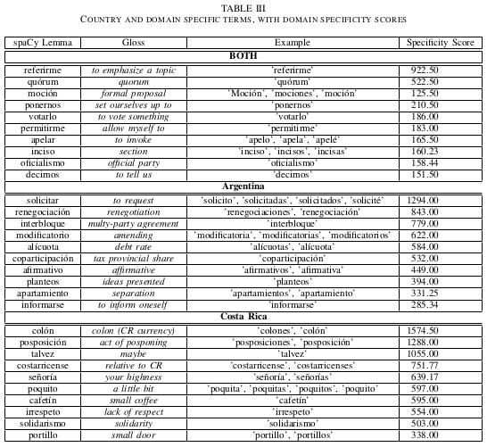 It uses 10 years of parliamentary discussions from Argentina and Costa Rica, as collected for the IE4OpenData project, to answer the research question: how important is dialect differences when using a large, multi-lingual pretrained contextual model (BERT). The answer is: dialect matters, but task is much more important.